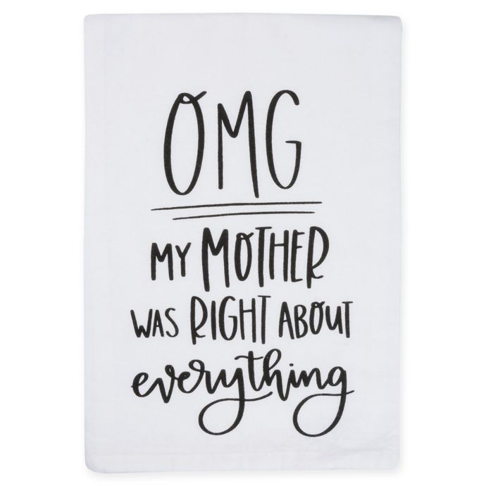 Set of 3 dish towel omg 4 4. A black and white cotton dish towel lending an omg my mother was right about everything sentiment that complements well with existing decor. Sold in increments of 6 dish towels. Measures 28 inches by 28 inches.